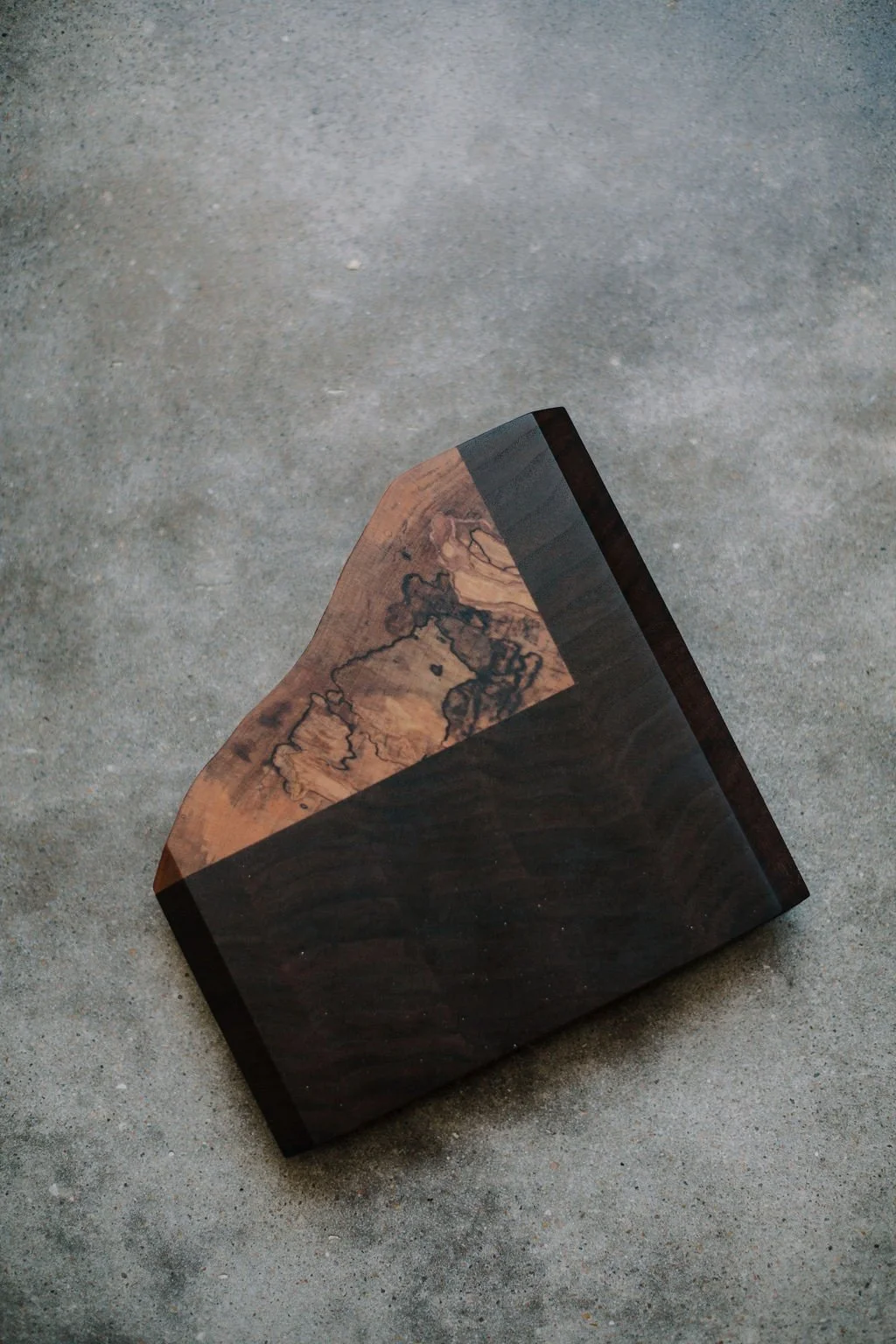 Every cutting board is designed to showcase the individual, unique beauty of the tree itself. The chosen species and their orientation to one another have been carefully considered for both aesthetics and durability, making each one a true Heirloom piece.